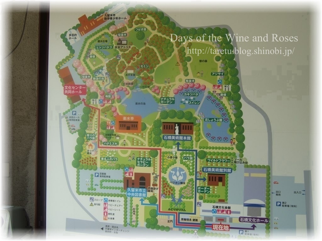 案内板によれば、バラ園のみならず回遊式の日本庭園もあって、四季とりどりの花が楽しめる様子。うんうん。これは夏枯れの今だけではなく、花の季節に再訪したいものです。