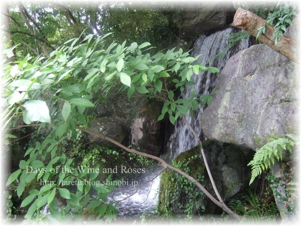 水音が涼しい。この日、最高気温34℃で、庭の散策にはあまり適してはいません。