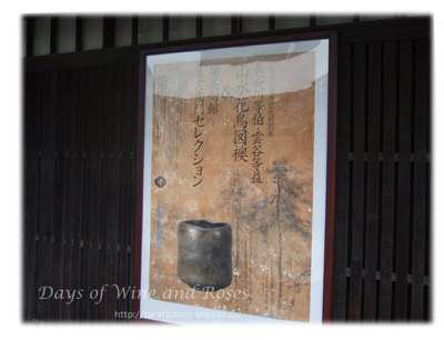 見ると一種の美術館らしく、長谷川等伯の襖絵と楽焼きのセレクション展をやっている様子です。