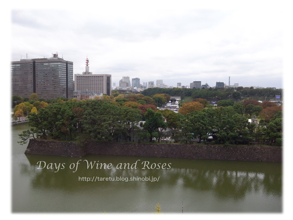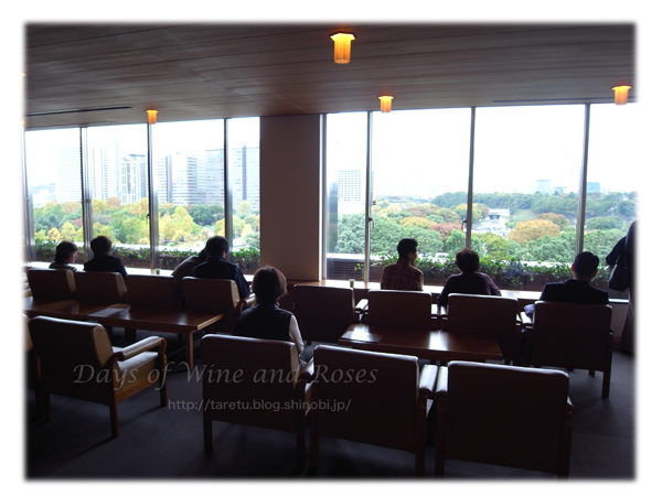大きな窓からは、紅葉に染まる皇居が見えます。丁度、天皇陛下即位20周年の記念イベントがあっている様子でした。