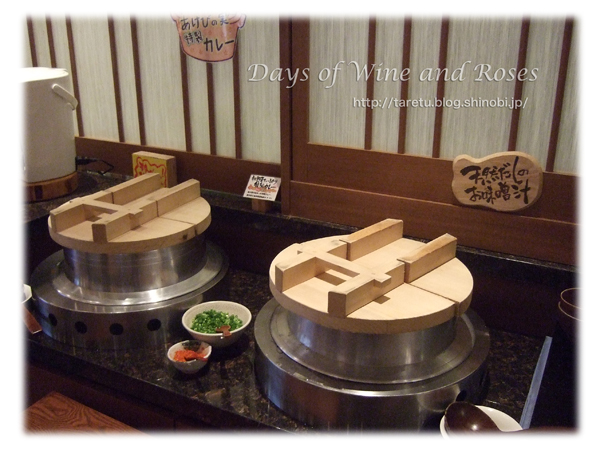 羽釜に入っているのは、お味噌汁。種類もあって具も自分で調整できます。