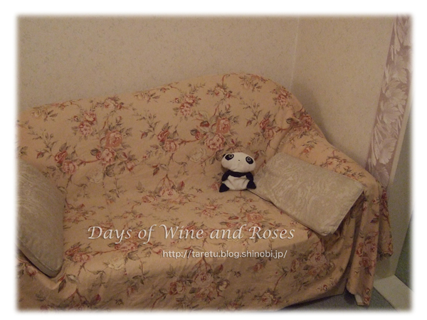お部屋は居間までついたスイートでした。なんとなく照れちゃうような英国風の小花模様のリネン類。