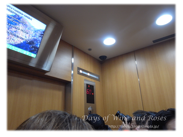 エレベーター内部にはどれだけ降りたのかを表示する電光掲示板があったりと、面白かったです。70mくらいを一気に降りてしまいます。