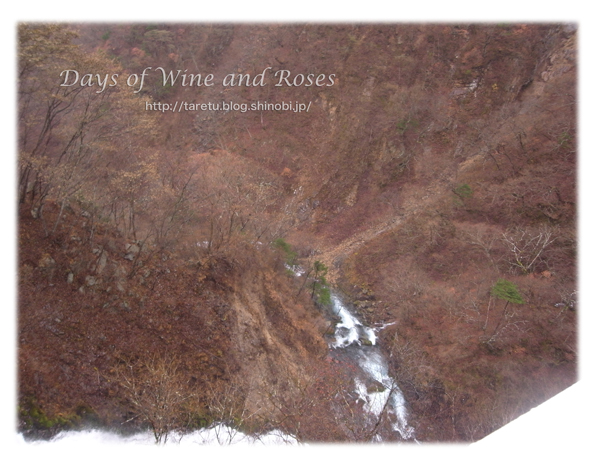 そして、滝とは反対方向を向いたところ。谷間につくられた滝見の場所は谷の真ん中。これまた高所恐怖にはかなり怖い位置。結構くらくらしたりします。