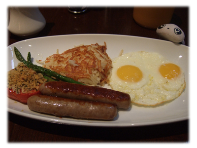 朝食は、私はTwo eggs any styleを。つまり、卵2つで、料理法を指定する、というゴク典型的なアメリカンブレックファーストです。