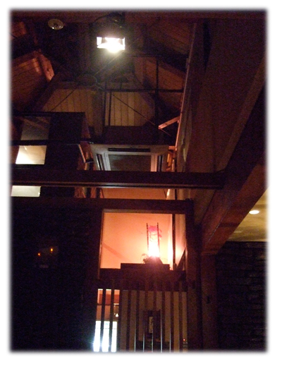 インテリアも、和風。古民家の改装ではないようですが、そのようなイメージに近づけてますね。壁には古い着物が飾ってあったり