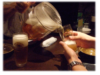 ま。取りあえずは生ビール。ピッチャーででてきます。みんなでワイワイやるときはピッチャーでビールは楽しいですね。