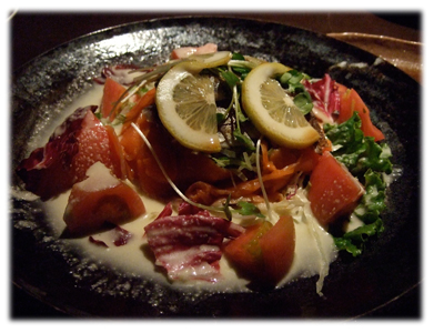 いっしょに秋鯖叩きとスモ−クサ−モンのサラダ仕立ても。鯖と叩きというよりはシメサバです。さっぱり風味のサラダです。