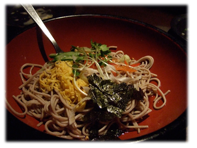三品同時に出てきた後は、少しインターミッションで、そばサラダが。中間にそばってのはちょっと珍しいかな。