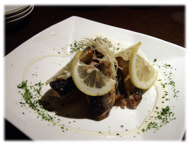 さんまのオイル蒸し。今年はホントよくサンマに行き合います。豊漁バンザイ!ってところでしょううね。オイル蒸しもなかなか面白い味でした。