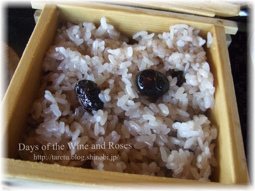 つやつやとしたおこわが、もっちりと美味しい~。風味のよい黒豆はふっくらやわらかで。風邪に痛めつけられて身体に優しい味。