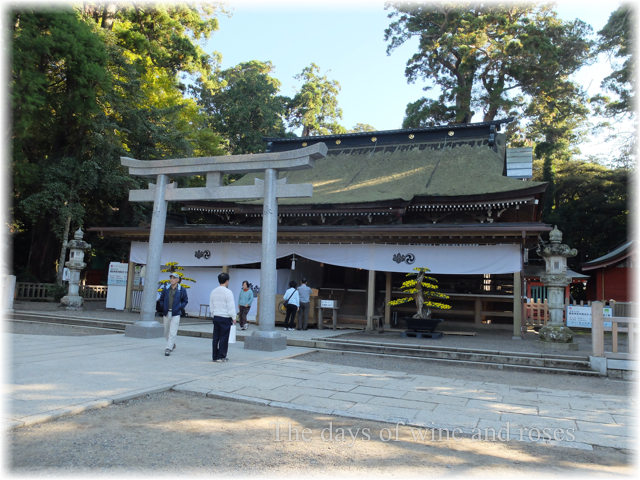 この日は美しい秋晴れ。コンディションは最高です。高速バスが、鹿島神宮の側まで行くことができます。バスが満員で、おお、鹿島神宮でお祭りでもあるのかと思ったのですが、皆さん背広姿のビジネスマンばかり。どうもなにか企業で会議かなにかあるみたい。みんな神宮に着く前に降りちゃいました。