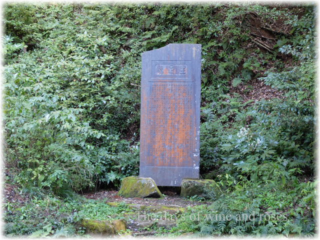 御手洗池の横には、鉄鉱石を利用したと思われる石碑がありました。長い年月で、赤さびが浮いているのが、渋いです。漢文で書かれた内容はよくわかりませんが、鹿島神傳直心影流の碑のようです
