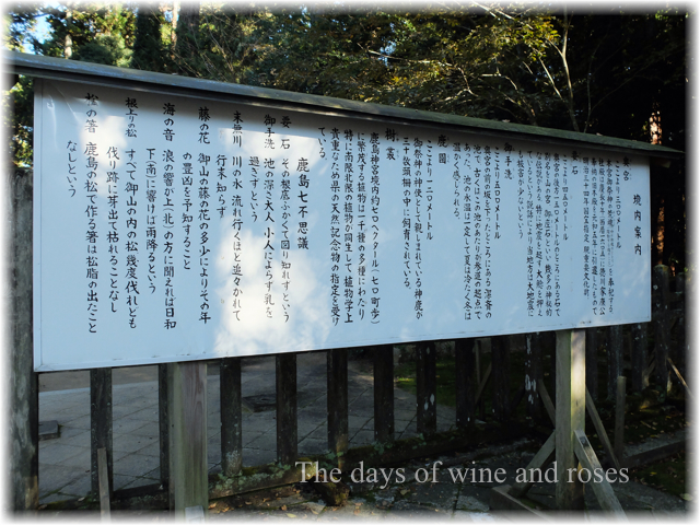 鹿島立ちとは、、防人(さきもり)や武士が旅立つ際に道中の無事を鹿島神宮に祈願したところからともいうことだそうです。でもこのパネル、あきらかにNHKのドラマ塚原朴伝ですよね。神宮の内部でも、ロケが行われたようで、各所にロケ地を示す看板が置いてありました。