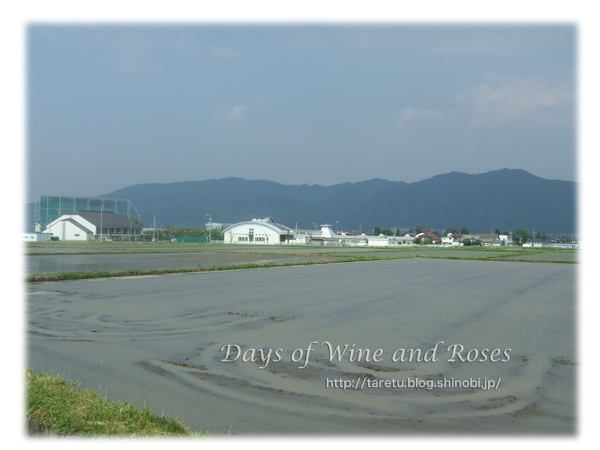 距離的には徒歩で30分くらいと、それほど遠くはないのですが、今度の道は、ひたすら単調。ただただ田んぼが続く中をまっすぐに道路が延びています。安曇野の農地は、ホント大きいです。福岡と規模が違う。