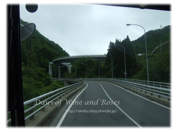 写真は山の上をくるくる回るループ橋、浅川ループラインです。バスの中から写真なのであまりよく撮れていませんが。山の中に突如現れるループは、なかなかの奇景。長野オリンピックの際につくられたそうです。