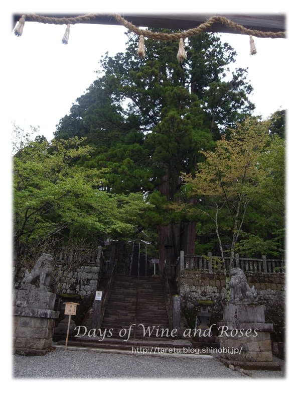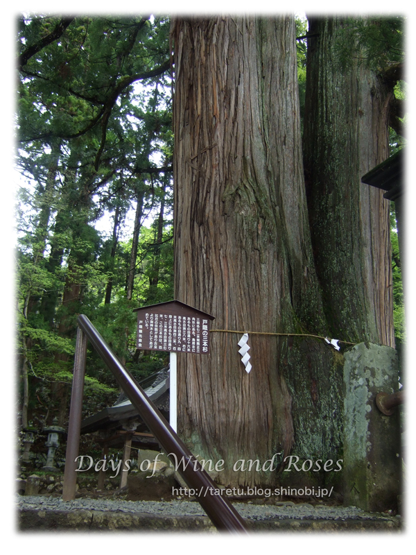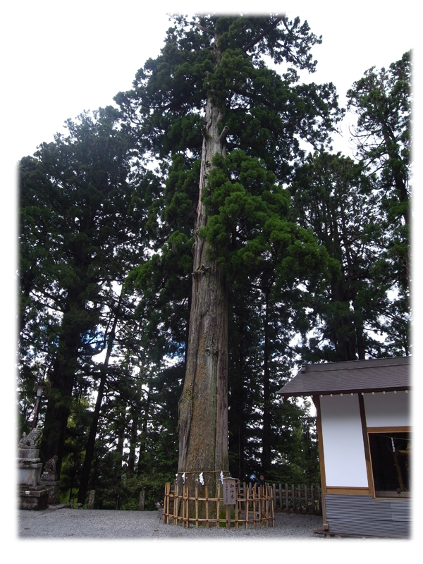 なお、境内にはまた別の神木の杉があり、こちらも立派な木です。全体に杉の木が鬱蒼としげって境内をつつみこんでいる印象があります。