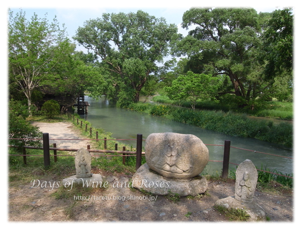 川と水車とをバックに道祖神。一番絵になる風景かな。