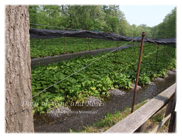 黒い布の下には緑鮮やかなわさびたち。これ以上もなく澄んだ日本アルプスの伏流水に守られて、緑の葉をのびやかに伸ばしています。これの地下茎が私たちが知る山葵(わさび)です。あ、チューブには入ってませんからね(笑)念のため。