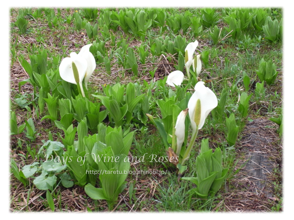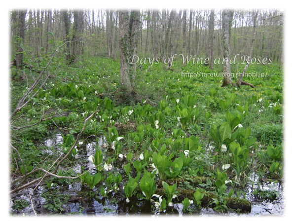 そのうちに人の姿を見るようになったな、と思ったら、湿地帯の水芭蕉の群生地に出ることができました。