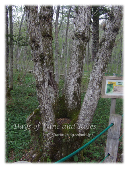 この面白い形の木はミズナラのあがりこです。雪が積もるたびに切られて、そこからまた芽がでて、成長したものだそうです。