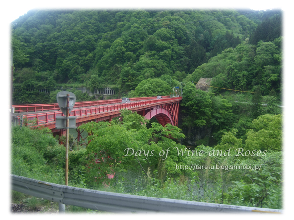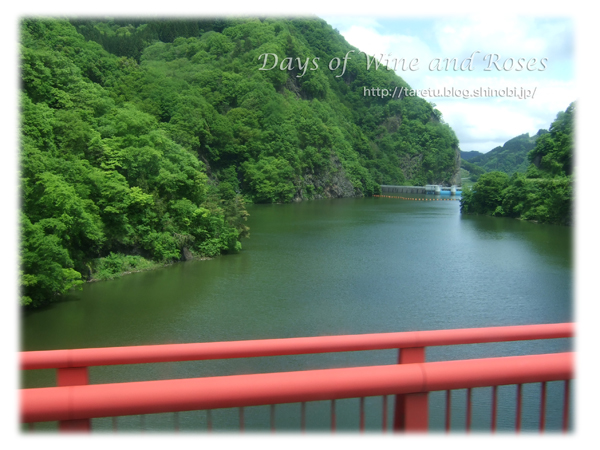 とはいえ、緑深い山の中、ダムに架かったこの赤い橋はきれいでした。後から橋の名を調べたのですがわかりません。