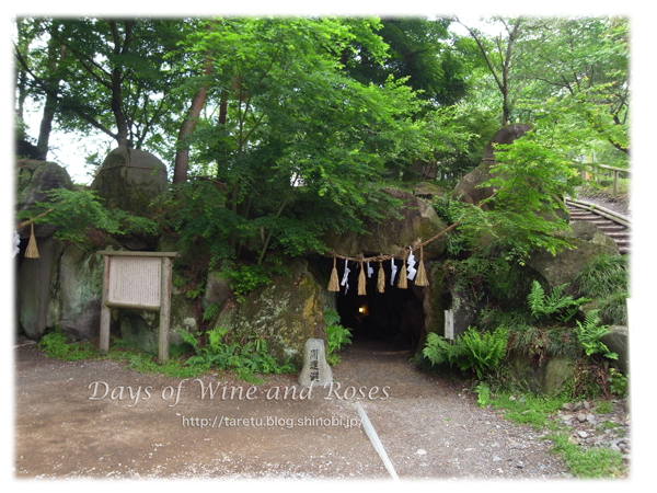 八面大王は岩屋にこもって戦ったと言われます。実際に籠もった場所とは違うのでしょうが、その岩屋を模しているのか農場にも洞窟がありました。