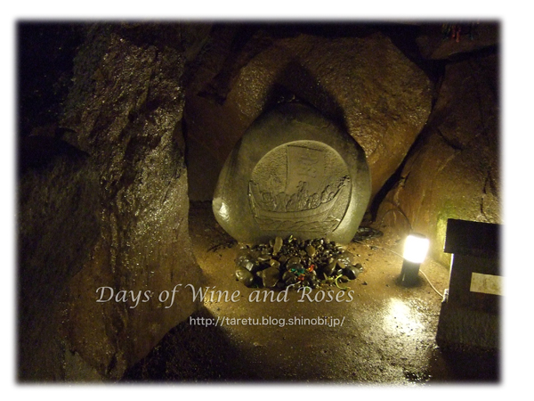 大王窟のほうは、真っ暗で写真が撮れませんでしたが、開運窟の中はライトアップされています。
