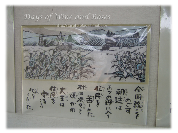 「全国統一をめざす朝廷はあずみ野に入り、住民を苦しめた。