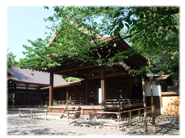 ちょうど「さくらまつり」に行き当たったようで、能楽堂では、いろんな奉納舞が行われていました。