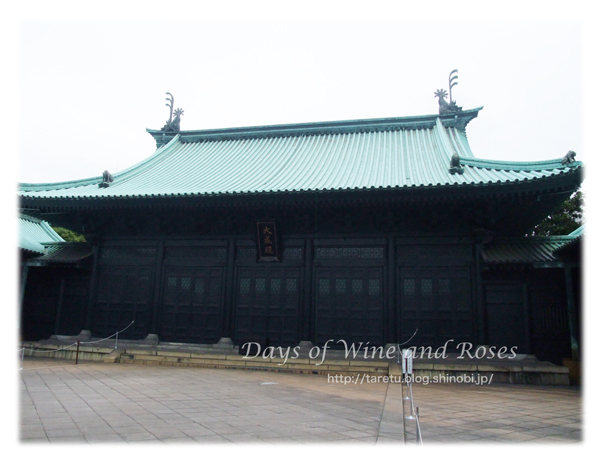 湯島聖堂の建物はストイックな黒で塗られていて、その上の緑色の瓦屋根とマッチングして、なんともモダンな雰囲気がします。