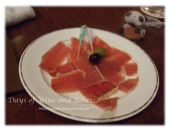 まずは生ハムのハモンセラーノあたりから。ワインだったからね。