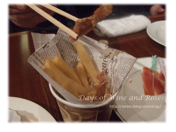美味しかったのが、このポテパーコー。ポテトと豚のスペアリブの揚げもの、排骨があわせてあります。