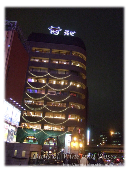 「肉の万世」牛ビル。名前だけは知っていましたが、ビルになっちゃってるんですね。