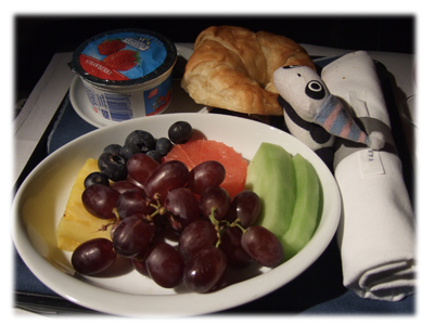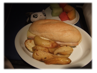 行きがけは和食膳がまずまずの美味しさだったので、ユナイテッドの機内食をかなり見直した我々ですが…。