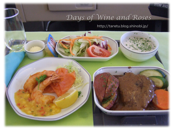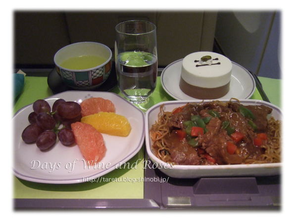 行きよりフライトの時間は長いはずなのですが、えらく時間が短く感じて、あっという間に朝食でした。