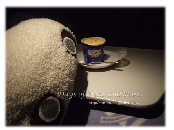 フラットシートのおかげでよく寝ていたのですが、ふと目が覚めると、アイスクリームが配られていました。