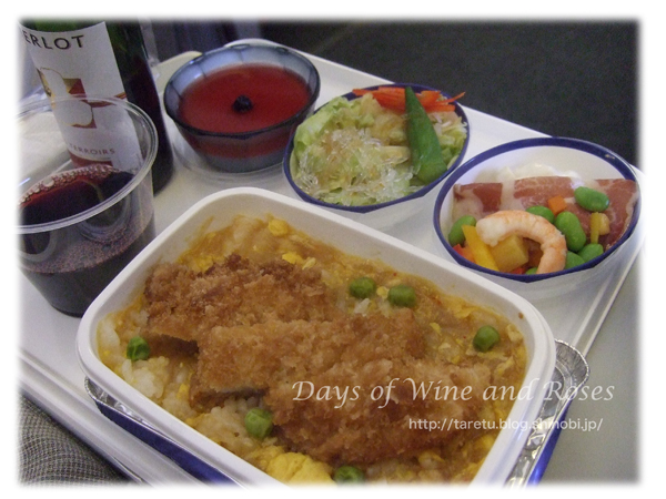JALではありますが、さすが、コードシェアということで、ワインはおフランス製。スクリューコックの小ボトルですが、さすがフランスワインは美味しいです。