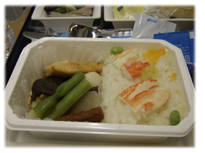 日本初のANA便なので、チョイスは和食系が賢いです。ということで配偶者もちゃんと和食のカニ寿司にした模様。