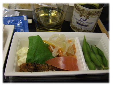 まずは往路ANA便、東京(成田)-ロサンジェルスの機内食です。