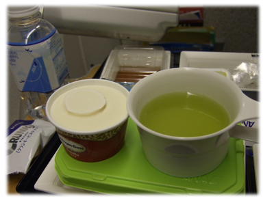 機内って乾燥しているから、このアイスクリームが妙に美味しいんですよねえ。