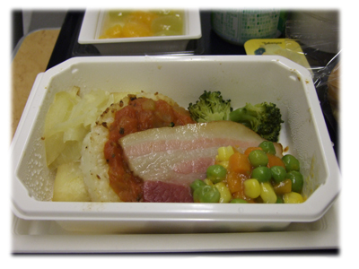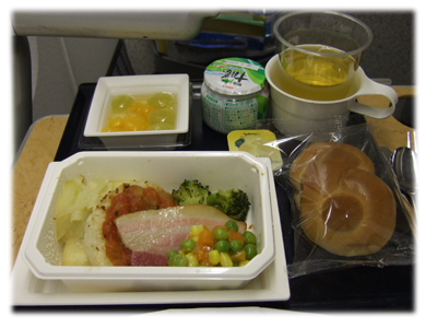 食事内容こそいっしょですが、プレミアムエコノミーだと席が前のほうにアサインされるので、機内食のチョイスも可能だし、温め方もきちっとしているので、気持ち、エコノミー席よりも美味しくいただけるような気がします。
