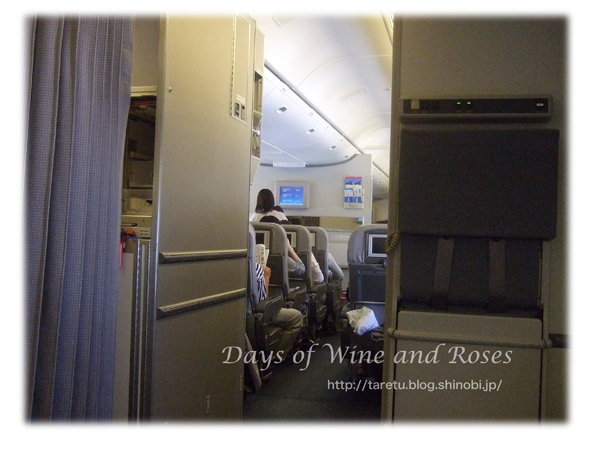使用機はJALとエールフランスのコードシェア便です。パリー成田便はドル箱なので、最新鋭機らしく。中はピカピカ。