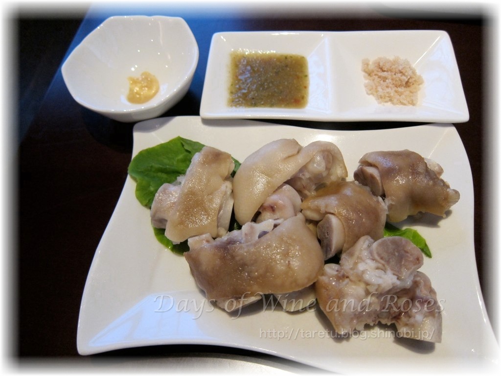 最初に「コロンバン」で食べたてびち(豚足)がえらく美味しかったので、また食べてみました。「コロンバン」のは薄甘く煮込んであったけれど、こちらは茹でてあります。塩やニンニクの効いたソースで頂きます。