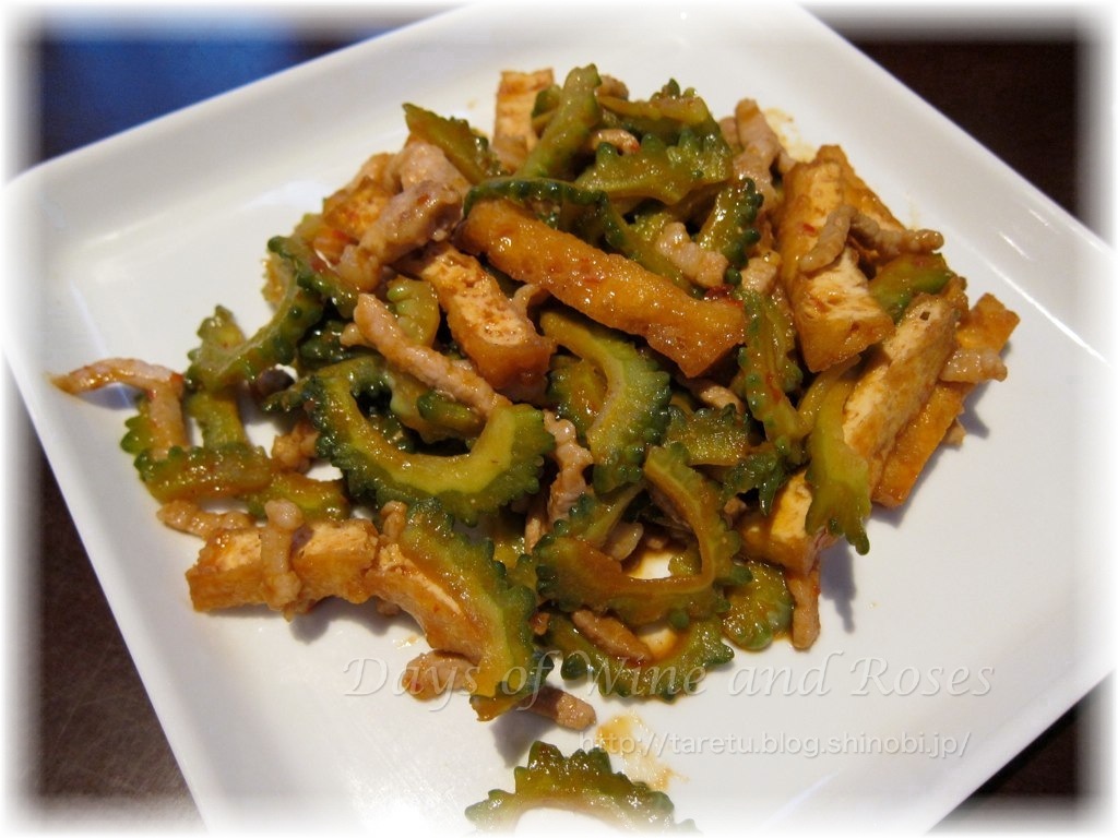 こちらのお店はトウガラシがよく効いてて辛い。辛いもの好きの配偶者には好評。ゴーヤの苦味が感じられないのがいいんだそう。