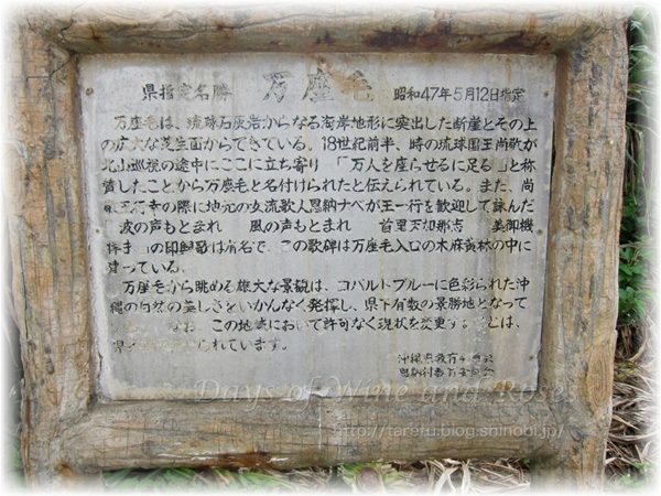 万座毛にあった説明書きによれば、琉球石灰岩からなる突きだした断崖とその上の広大な芝生面を万座毛と呼ぶとか。