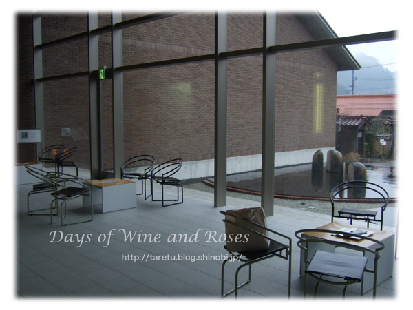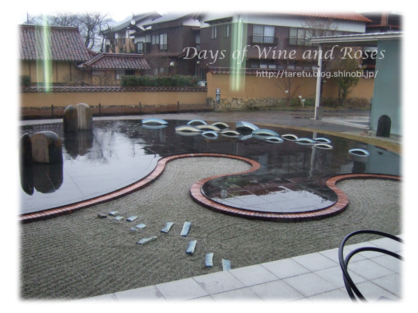 前庭は海をイメージしていて、波と石とをモチーフのオブジェが置いてあります。
