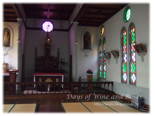 日本らしく内部は畳敷きの教会です。