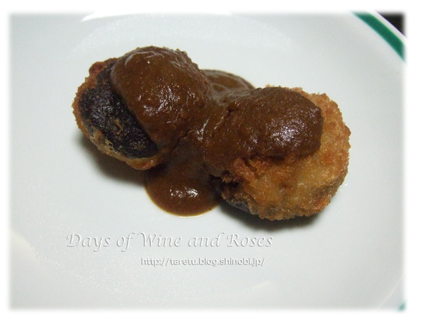 揚げ物は「中也の帽子」をかたどった、肉詰め椎茸のカレーソースかけです。