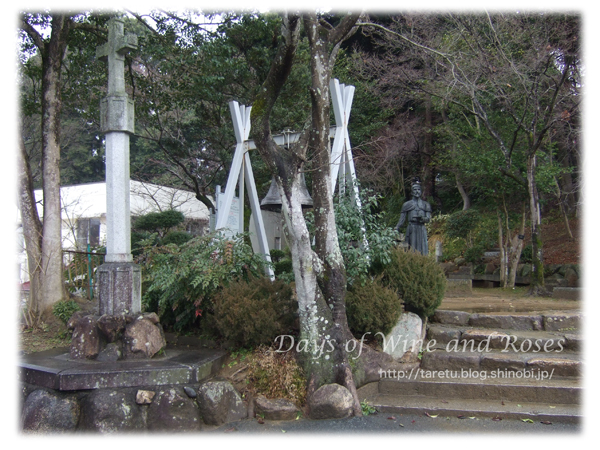 ひっそりとした場所にある鐘と、ふるびたザビエル像。こちらのほうが、好きかな。